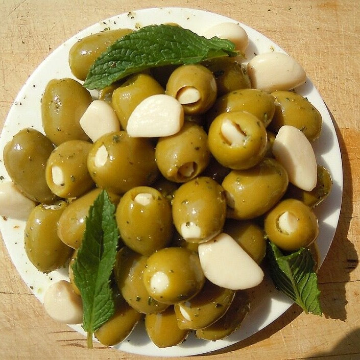 Fresh ready-to-eat green Olives, hand-stuffed with Garlic, hand-marinated in Extra Virgin Olive Oil and Wild Mountain Herbs. Supplied in packs or pots of approx 230g.