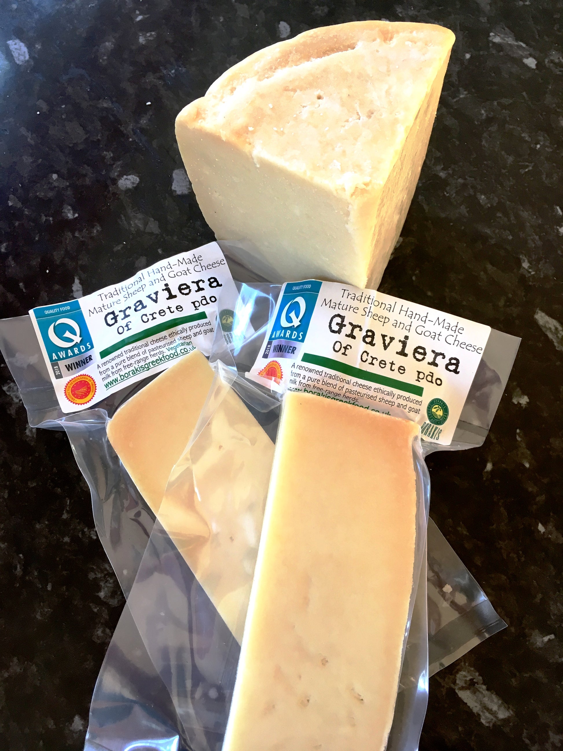 Our Award-winning Graviera, hand-made on our farm in Crete, a particularly tasty, slightly salted, mature cheese made from a blend of sheep and goat milk. The second most popular cheese in Greece, after Feta, the Graviera made in Crete is particularly prized.