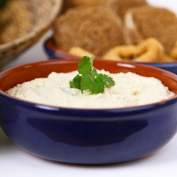 Delicious on crusty bread, with crudites, or served with hot Keftedes (meatballs) or Falafel.